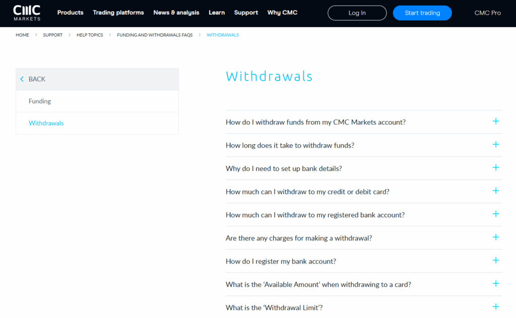 CMC Markets offers free deposits and withdrawals, with funds processed via bank transfer or debit/credit cards. Withdrawal times typically range from 1-2 business days, but international bank transfers may take longer and may incur third-party bank fees.
