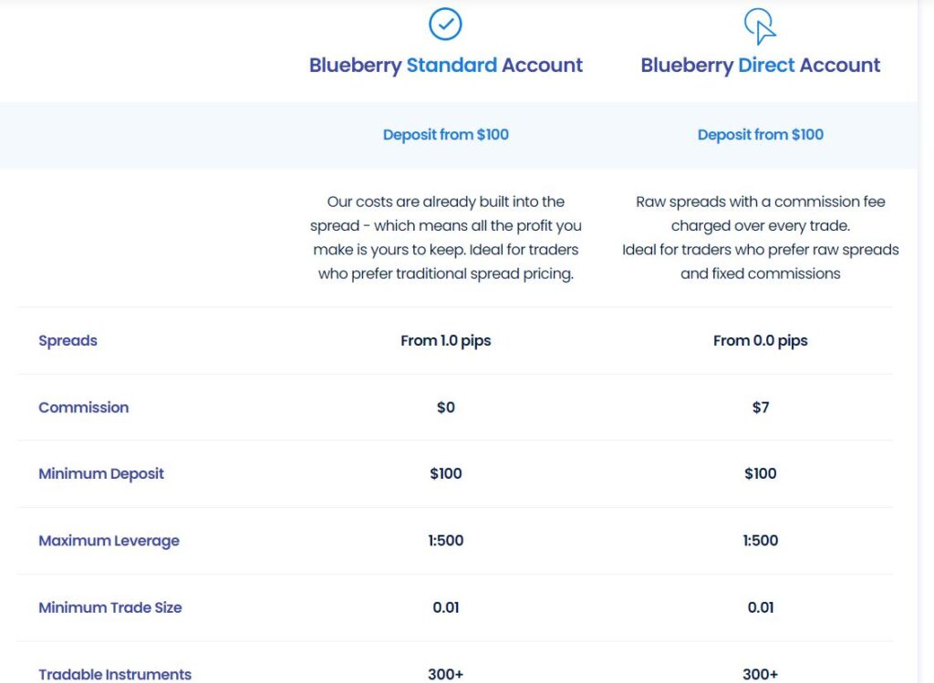La Cuenta Estándar de Blueberry es perfecta para traders que prefieren la fijación de precios de spread tradicional, con costos ya incluidos en el spread. Mientras tanto, la Cuenta Directa de Blueberry es una gran opción para aquellos que prefieren spreads crudos y comisiones fijas.