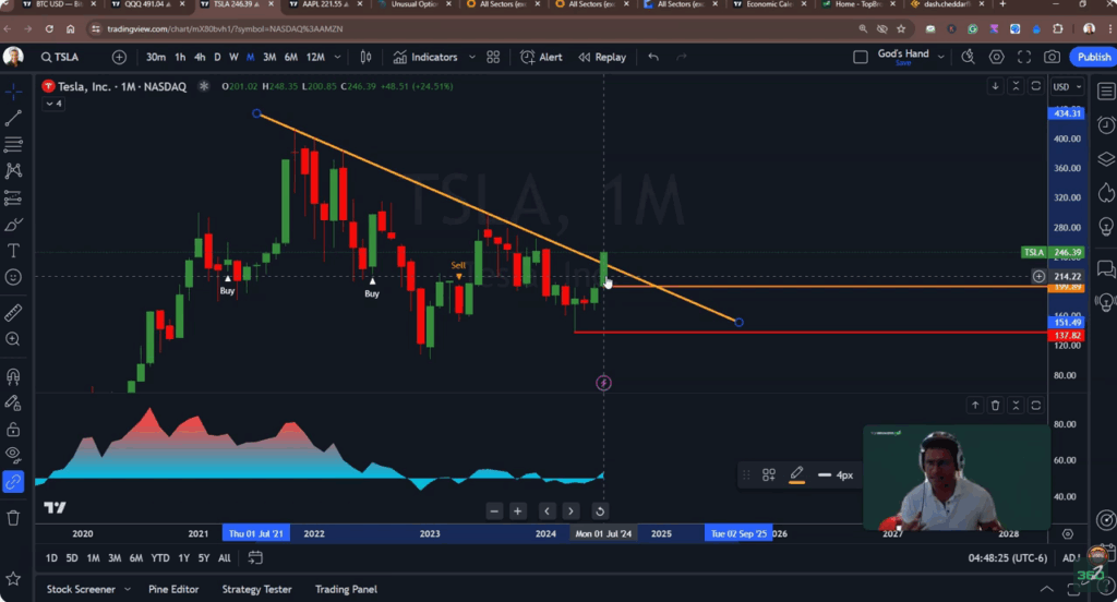 Tesla and Apple are two giants that have shown significant movements. Tesla’s recent performance has been solid, breaking past bearish trends and signaling a potential for substantial upward movement. Meanwhile, Apple has managed to maintain its growth trajectory, unaffected by broader market volatility.