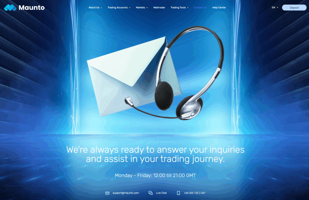Un support client fiable est essentiel pour tout trader. Maunto offre plusieurs canaux de support, y compris le chat en direct, l’e-mail et le support téléphonique, garantissant que les utilisateurs reçoivent des réponses rapides.